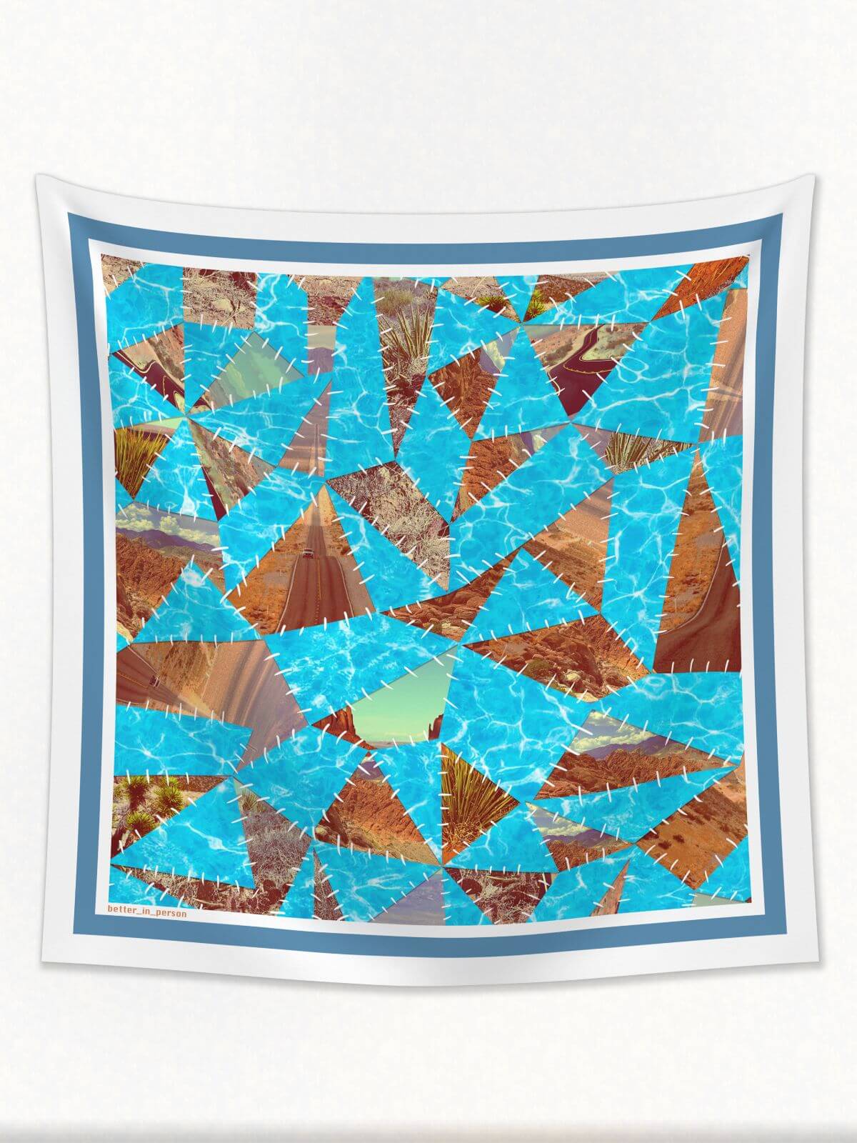 This quilt print is what happens when you digitally stitch together the hot desert sun and the fresh aqua pool.