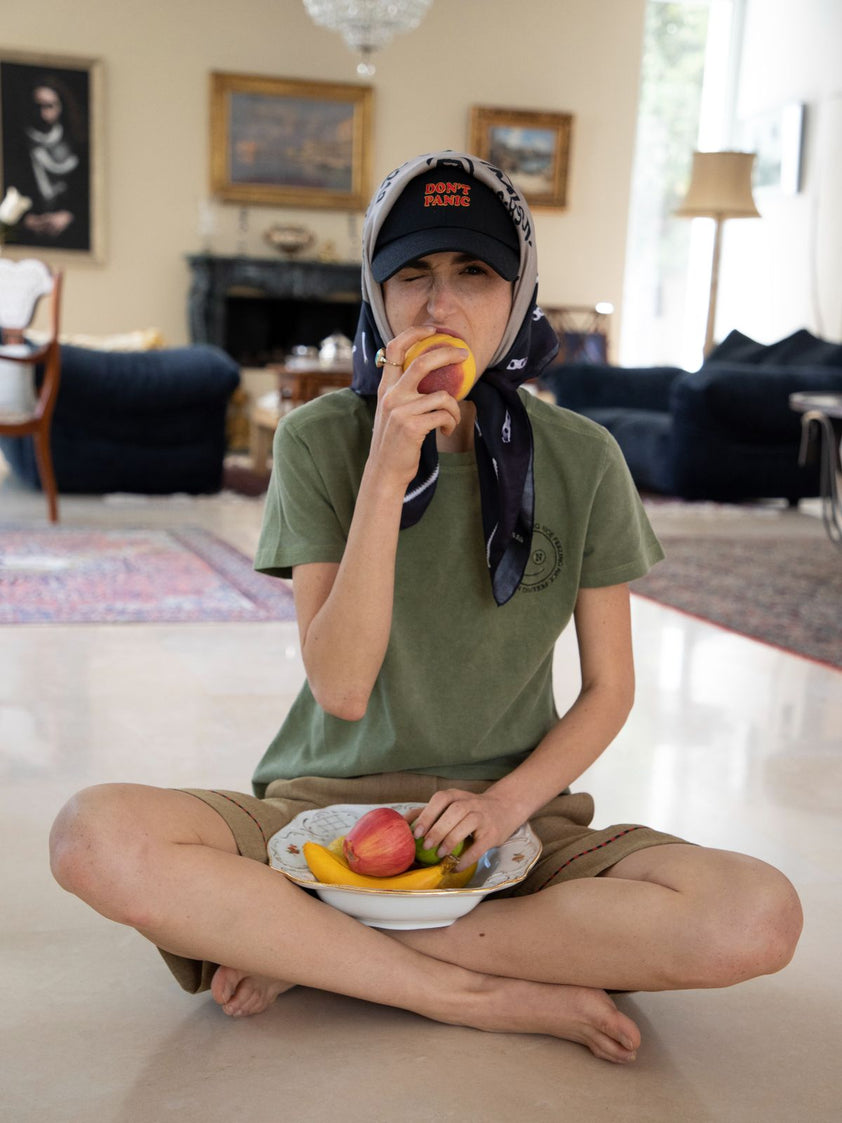 Embroidered logo on 100% cotton.